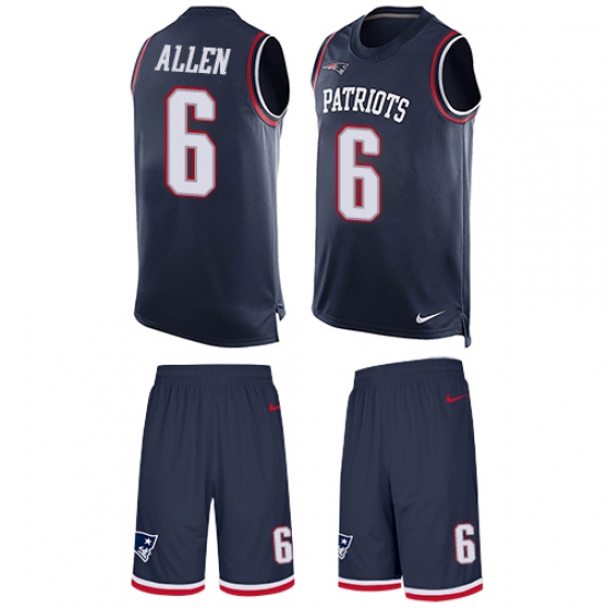 Men's Nike New England Patriots #6 Ryan Allen Limited Navy Blue Tank Top Suit NFL Jersey