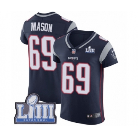 Men's Nike New England Patriots #69 Shaq Mason Navy Blue Team Color Vapor Untouchable Elite Player Super Bowl LIII Bound NFL Jersey
