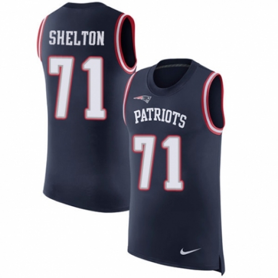 Men's Nike New England Patriots #71 Danny Shelton Navy Blue Rush Player Name & Number Tank Top NFL Jersey