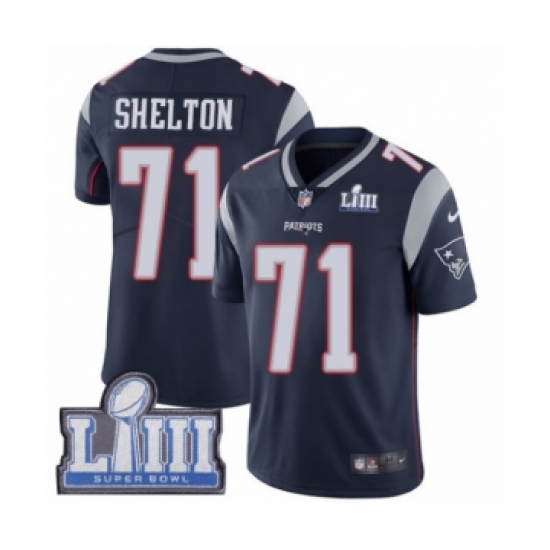 Men's Nike New England Patriots #71 Danny Shelton Navy Blue Team Color Vapor Untouchable Limited Player Super Bowl LIII Bound NFL Jersey