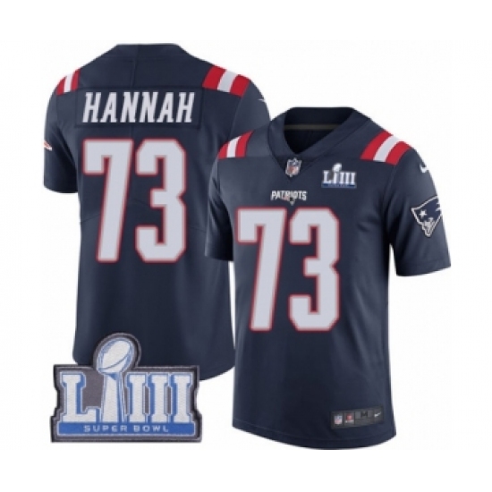 Men's Nike New England Patriots #73 John Hannah Limited Navy Blue Rush Vapor Untouchable Super Bowl LIII Bound NFL Jersey