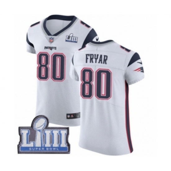 Men's Nike New England Patriots #80 Irving Fryar White Vapor Untouchable Elite Player Super Bowl LIII Bound NFL Jersey