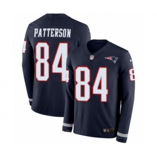 >Men's Nike New England Patriots #84 Cordarrelle Patterson Limited Navy Blue Therma Long Sleeve NFL Jersey