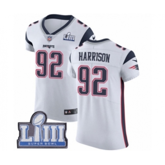 Men's Nike New England Patriots #92 James Harrison White Vapor Untouchable Elite Player Super Bowl LIII Bound NFL Jersey