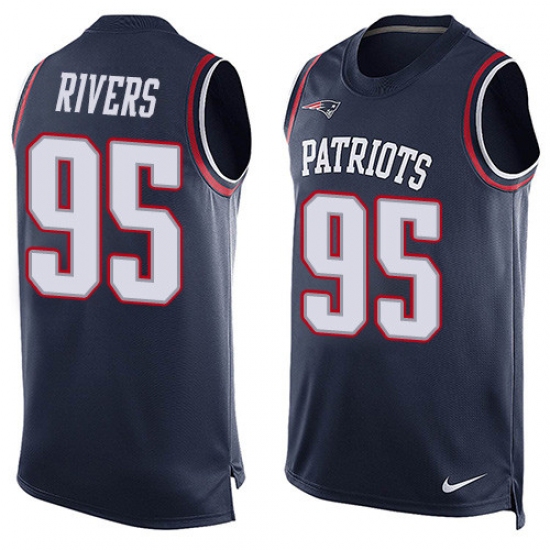 Home>NFL>New England Patriots>Derek Rivers>Men's Nike New England Patriots #95 Derek Rivers Limited Navy Blue Player Name & Number Tank Top NFL Jersey