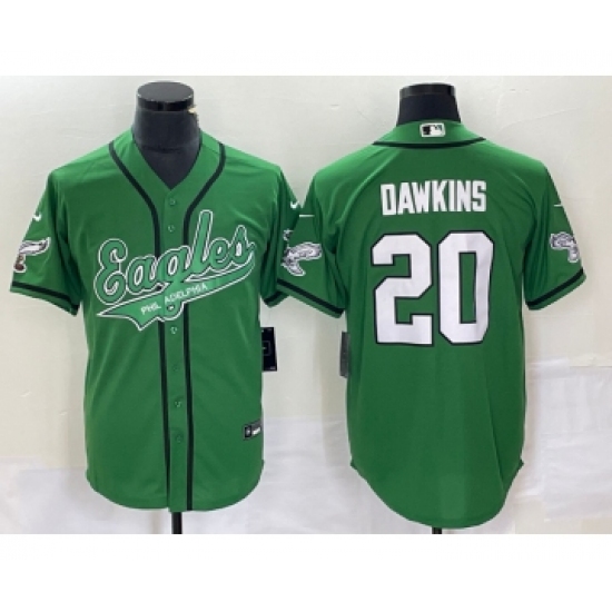 >Men's Nike Philadelphia Eagles #20 Brian Dawkins Green Cool Base Stitched Baseball Jersey