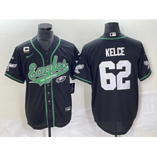 Men's Nike Philadelphia Eagles #62 Jason Kelce Black C Cool Base Stitched Baseball Jersey