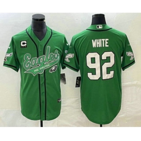 Men's Nike Philadelphia Eagles #92 Reggie White Green C Cool Base Stitched Baseball Jersey