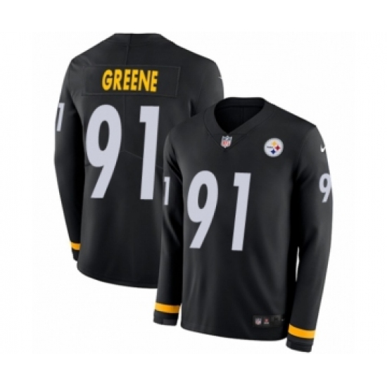 Men's Nike Pittsburgh Steelers #91 Kevin Greene Limited Black Therma Long Sleeve NFL Jersey