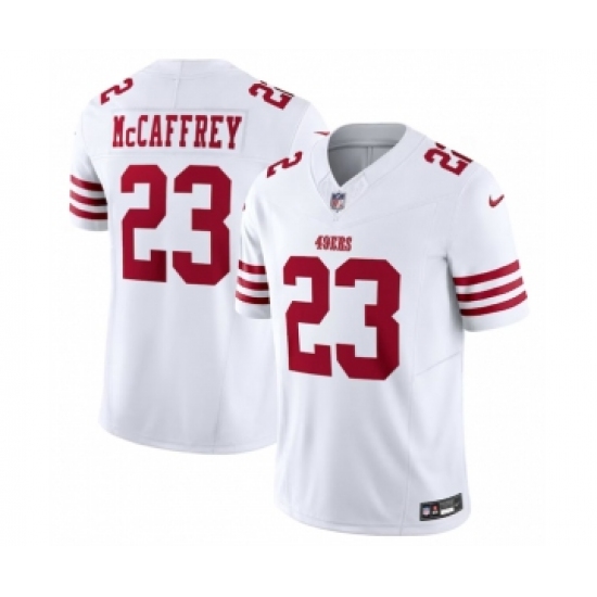 >Men's Nike San Francisco 49ers #23 Christian McCaffrey White 2023 F.U.S.E. Vapor Untouchable Limited Stitched Football Jersey