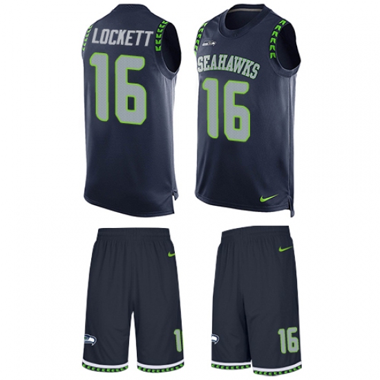 Home>NFL>Seattle Seahawks>Tyler Lockett>Men's Nike Seattle Seahawks #16 Tyler Lockett Limited Steel Blue Tank Top Suit NFL Jersey