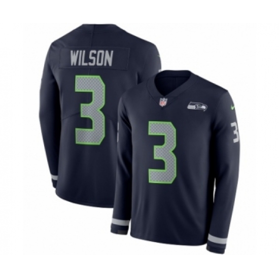 Men's Nike Seattle Seahawks #3 Russell Wilson Limited Navy Blue Therma Long Sleeve NFL Jersey