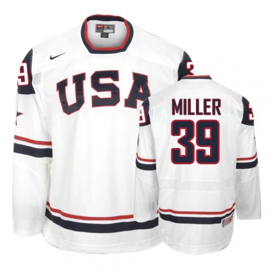 Men's Nike Team USA #39 Ryan Miller Premier White 2010 Olympic Hockey Jersey