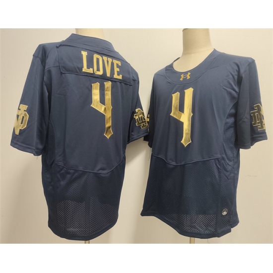 Men's Notre Dame Fighting Irish #4 Jeremiyah Love Navy With Name Limited Stitched Jersey