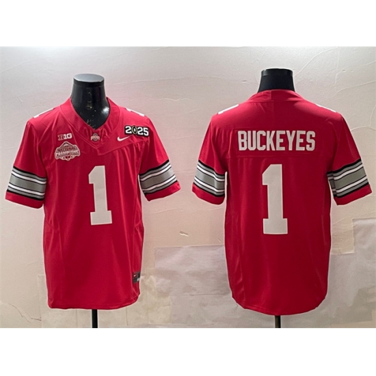 Men's Ohio State Buckeyes #1 Buckeyes Red 2025 CFP Final With National Champions F.U.S.E. Vapor Limited Stitched Football Jersey