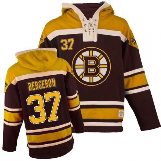 Men's Old Time Hockey Boston Bruins #37 Patrice Bergeron Premier Black Sawyer Hooded Sweatshirt NHL Jersey