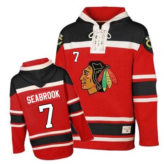 Men's Old Time Hockey Chicago Blackhawks #7 Chris Chelios Premier Red Sawyer Hooded Sweatshirt NHL Jersey