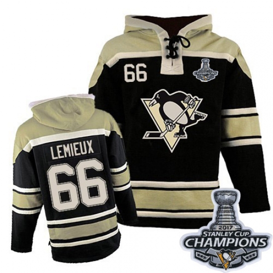 Home>NHL>Pittsburgh Penguins>Mario Lemieux>Men's Old Time Hockey Pittsburgh Penguins #66 Mario Lemieux Premier Black Sawyer Hooded Sweatshirt 2017 Stanley Cup Champions