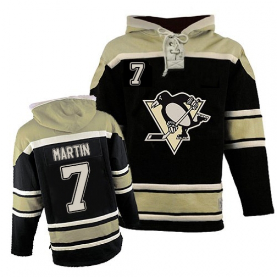 Home>NHL>Pittsburgh Penguins>Paul Martin>Men's Old Time Hockey Pittsburgh Penguins #7 Paul Martin Premier Black Sawyer Hooded Sweatshirt NHL Jersey