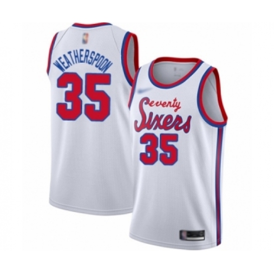 >Men's Philadelphia 76ers #35 Clarence Weatherspoon Authentic White Hardwood Classics Basketball Jersey