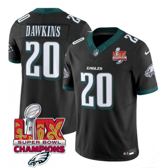 >Men's Philadelphia Eagles #20 Brian Dawkins Black 2025 Eagles Logo Super Bowl LIX New F.U.S.E. Vapor Limited Football Stitched Jersey