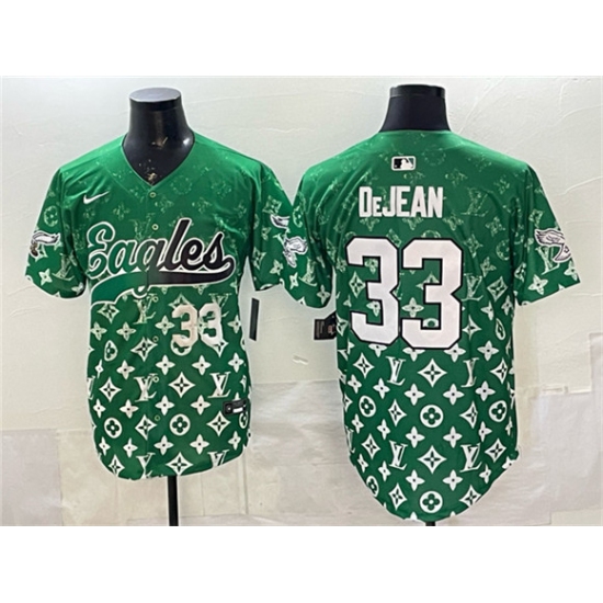 >Men's Philadelphia Eagles #33 Cooper DeJean Green With Limited Stitched Baseball Jersey