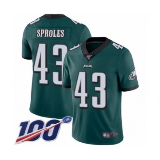 Men's Philadelphia Eagles #43 Darren Sproles Midnight Green Team Color Vapor Untouchable Limited Player 100th Season Football Jersey
