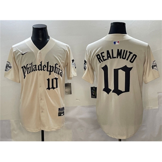 Men's Philadelphia Phillies #10 J.T. Realmuto Cream Gothic Vapor Limited Stitched Jersey