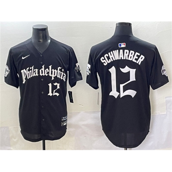 Men's Philadelphia Phillies #12 Kyle Schwarber Black Gothic Vapor Limited Stitched Jersey