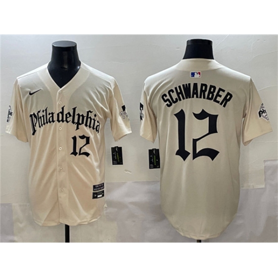 >Men's Philadelphia Phillies #12 Kyle Schwarber Cream Gothic Vapor Limited Stitched Jersey