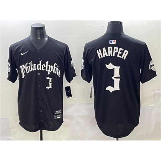 >Men's Philadelphia Phillies #3 Bryce Harper Black Gothic Vapor Limited Stitched Jersey