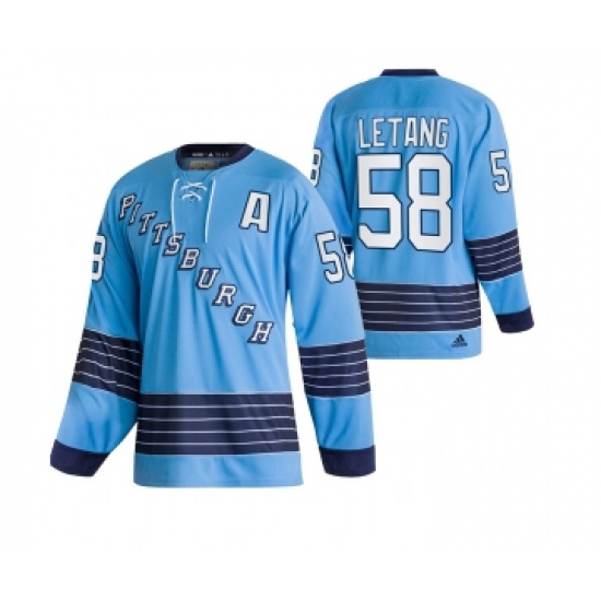 Men's Pittsburgh Penguins #58 Kris Letang 2022 Blue Classics Stitched Jersey