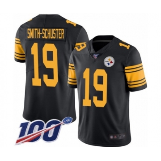 >Men's Pittsburgh Steelers #19 JuJu Smith-Schuster Limited Black Rush Vapor Untouchable 100th Season Football Jersey