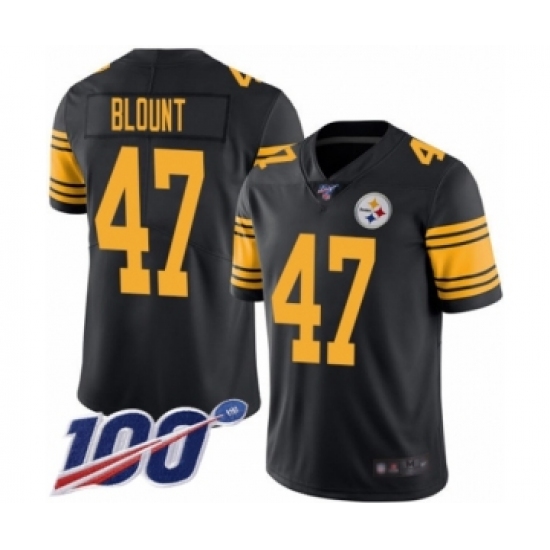 >Men's Pittsburgh Steelers #47 Mel Blount Limited Black Rush Vapor Untouchable 100th Season Football Jersey
