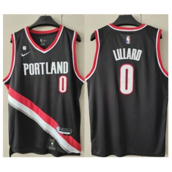 Men's Portland Trail Blazers #0 Damian Lillard Black With No.6 Patch Stitched Basketball Jersey