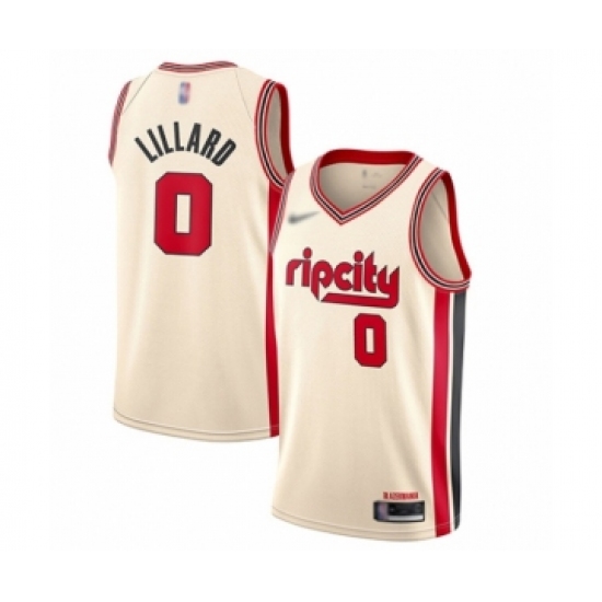 >Men's Portland Trail Blazers #0 Damian Lillard Swingman Cream Basketball Jersey - 2019 20 City Edition