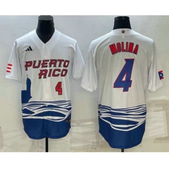 Men's Puerto Rico Baseball #4 Yadier Molina 2023 Blue World Baseball Classic Stitched Jerseys