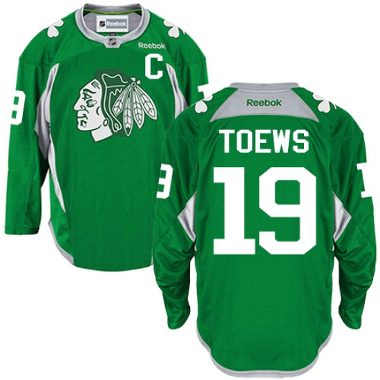 Home>NHL>Chicago Blackhawks>Jonathan Toews>Men's Reebok Chicago Blackhawks #19 Jonathan Toews Authentic Green Practice NHL Jersey