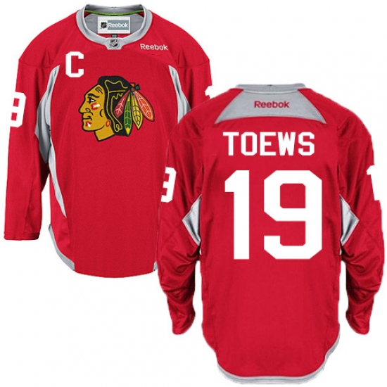 Men's Reebok Chicago Blackhawks #19 Jonathan Toews Authentic Red Practice NHL Jersey