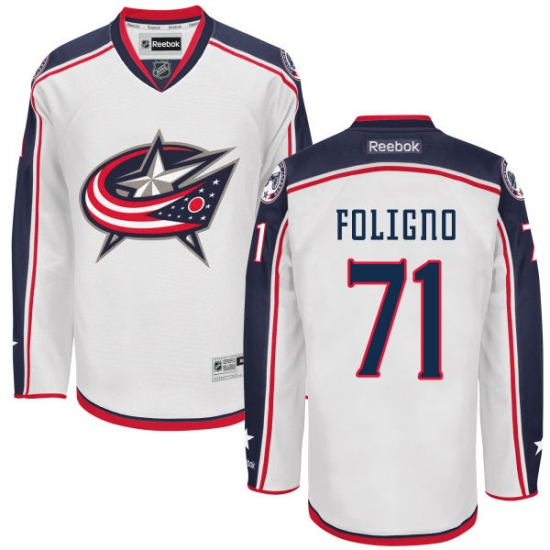 Home>NHL>Columbus Blue Jackets>Nick Foligno>Men's Reebok Columbus Blue Jackets #71 Nick Foligno Authentic White Away NHL Jersey