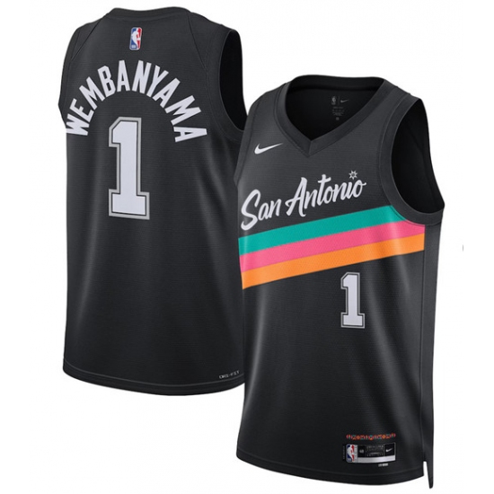 Men's San Antonio Spurs #1 Victor Wembanyama Black 2025 Statement Edition Stitched Basketball Jersey