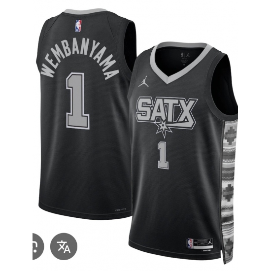 Men's San Antonio Spurs #1 Victor Wembanyama Black 2025 Statement Edition Stitched Basketball Jersey