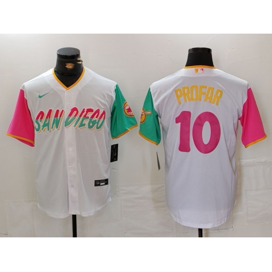 >Men's San Diego Padres #10 Jurickson Profar White 2023 City Connect Cool Base Stitched Jersey