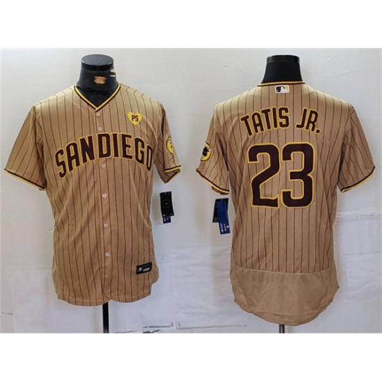 Men's San Diego Padres #23 Fernando Tatis Jr. Tan With PS Flex Base Stitched Baseball Jersey