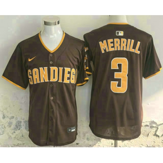 >Men's San Diego Padres #3 Jackson Merrill Brown Limited Stitched Jersey