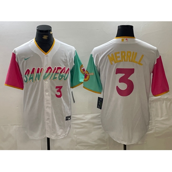Men's San Diego Padres #3 Jackson Merrill Number White 2023 City Connect Cool Base Stitched Jersey
