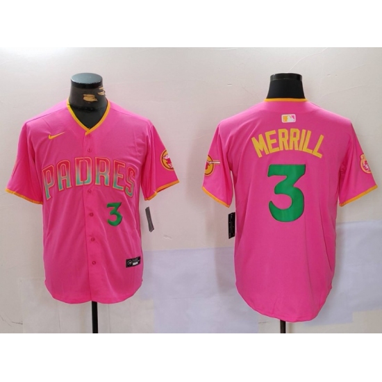 Men's San Diego Padres #3 Jackson Merrill Pink Player Number Fashion Baseball Jersey