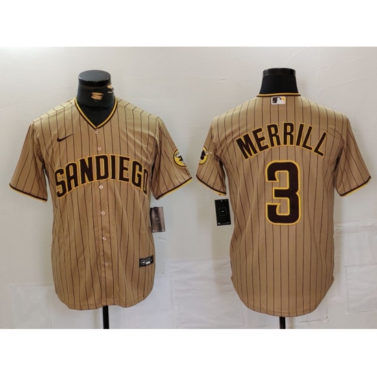 Men's San Diego Padres #3 Jackson Merrill Tan NEW 2023 Cool Base Stitched Jersey