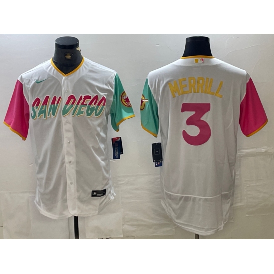 Men's San Diego Padres #3 Jackson Merrill White NEW 2023 City Connect Cool Base Stitched Jersey
