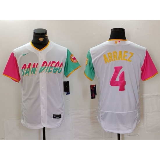 >Men's San Diego Padres #4 Luis Arraez White 2023 City Connect Flex Base Stitched Jersey